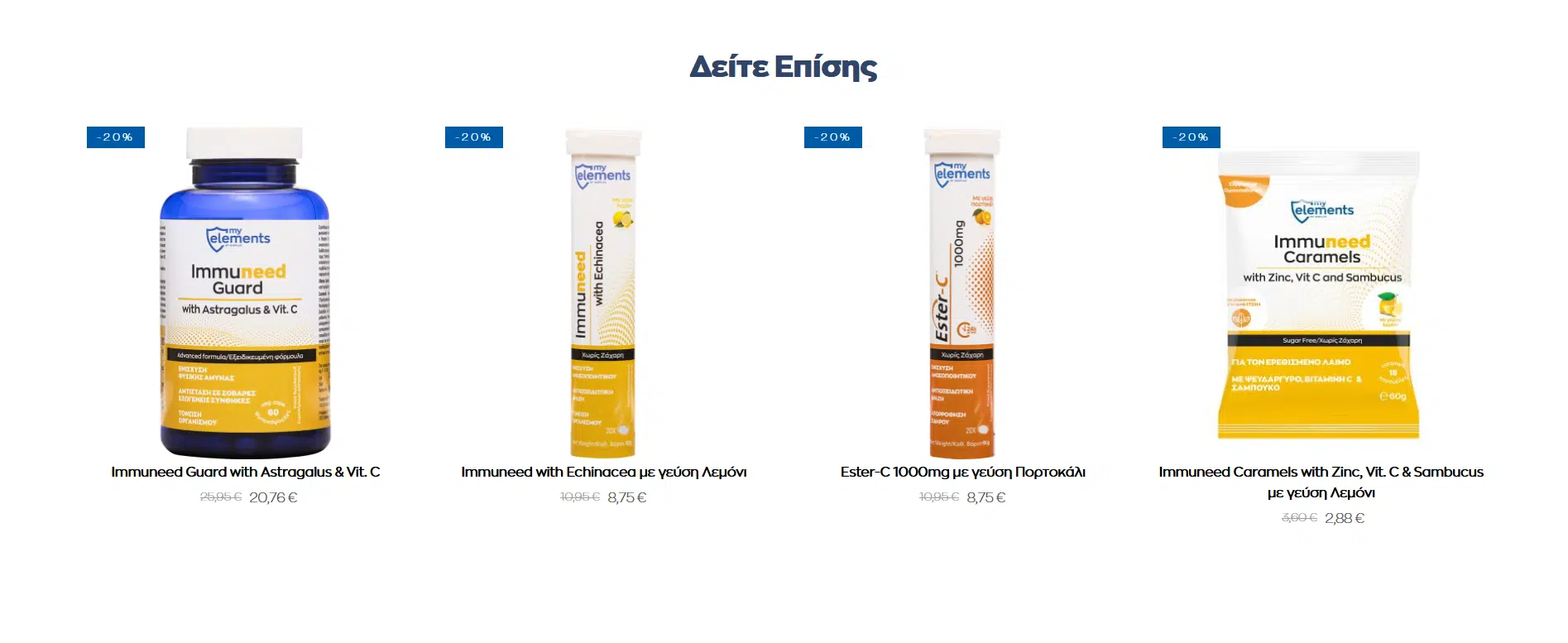 Στη myelements σχεδιάζουμε και σας παρέχουμε εξειδικευμένες σειρές συμπληρωμάτων διατροφής με ποιοτικά, ασφαλή και καινοτόμα προϊόντα που καλύπτουν αποτελεσματικά τις καθημερινές σας ανάγκες, θωρακίζουν τον οργανισμό και σας βοηθούν να βελτιώνετε τον εαυτό σας κάθε ημέρα. Εσείς, βρήκατε το δικό σας myelements;